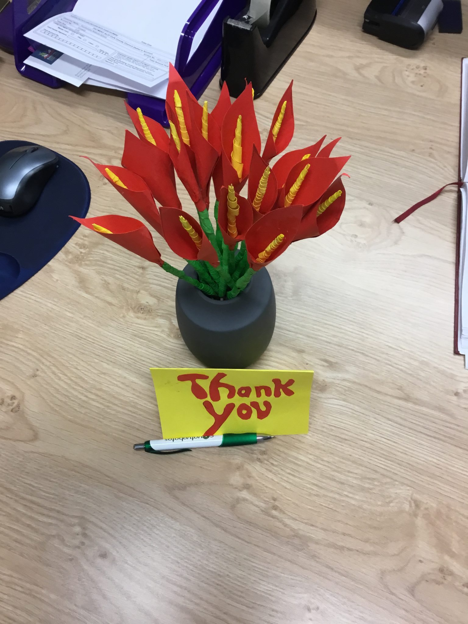 Here in Bunscoil Rinn an Chabhlaigh, the Health Promoting School’s Committee were busy making paper flowers to thank the office (Pat, Susan, Jerry and Cecilia) for all their hard work. There’s no doubt that the school wouldn’t function without them!