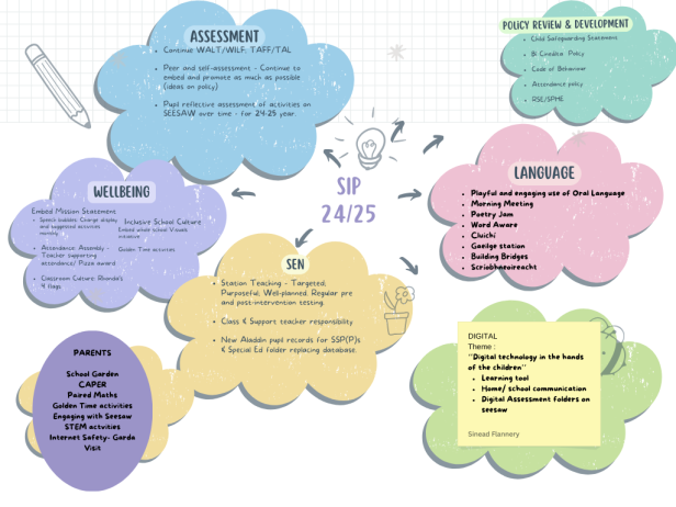 2. Our New PMC (Primary Maths Curriculum) encourages the children to be active and engaged in their learning. This curriculum based on skills based- creative. We will continue the development of ‘Maths Talk’ as our SSE Focus, (School Self Evaluation). To do this we will be encouraging the use of concrete materials / virtual manipulatives as well as Digital Maths learning.