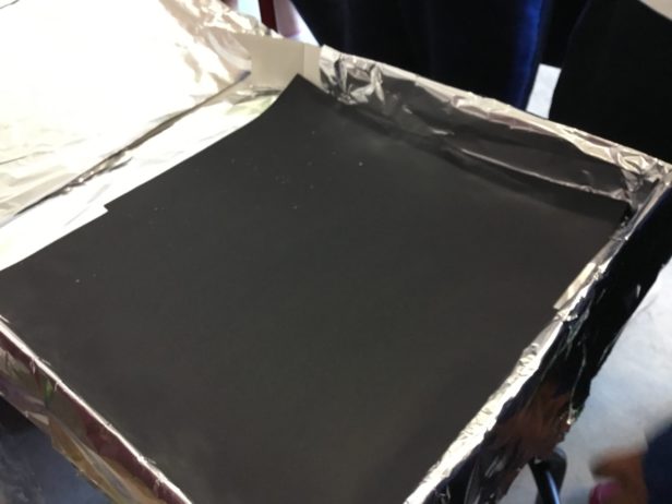 First we covered a pizza box in tinfoil (shiny side out).
