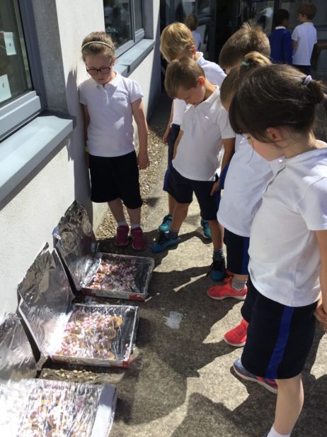 On their last week in school Ms Falvey’s Senior Infants took advantage of the lovely hot weather to carry out a very exciting science experiment. They used solar energy to make their own version of the popular American treat- s’mores!