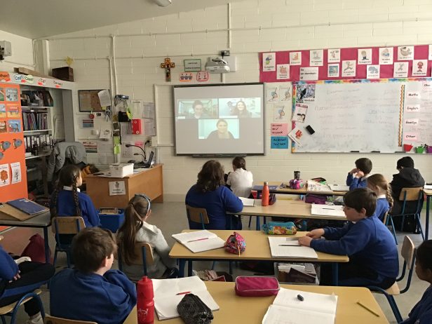Here are Ms. Scannnell’s 4th class pupils enjoying the live event. They learn lots about the Ice Age, fossils and extinct species of animals