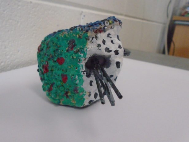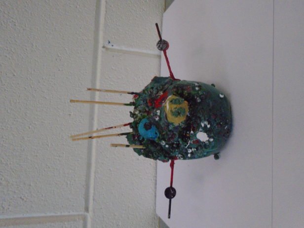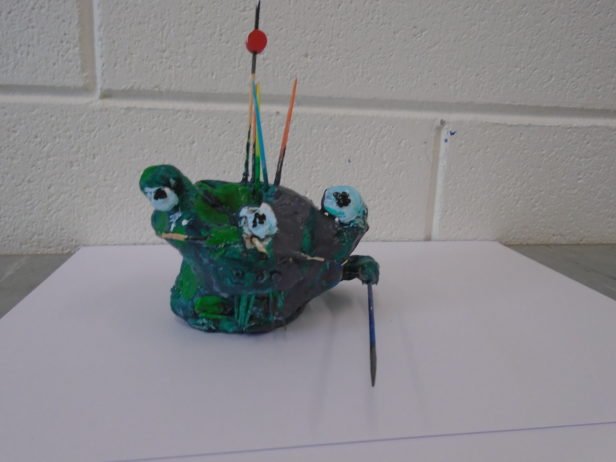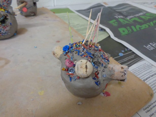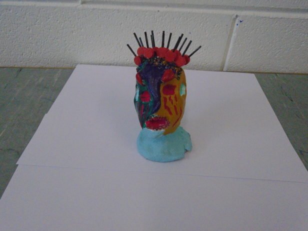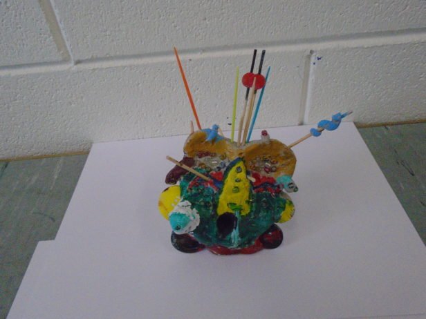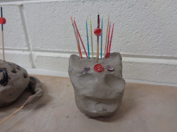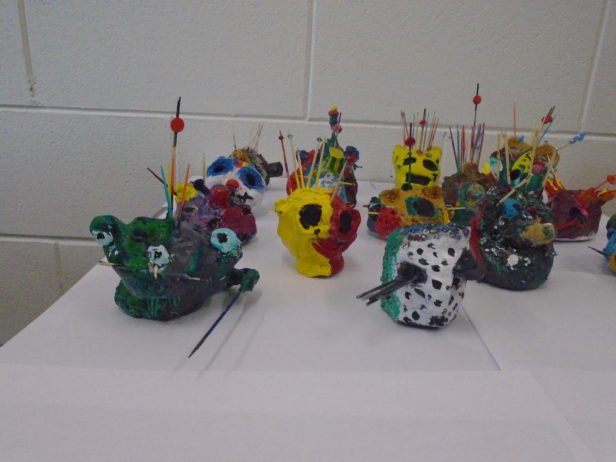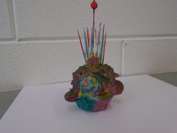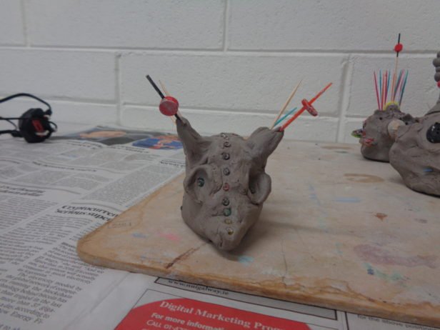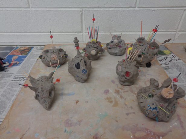 Remaining with the theme of abstraction and the terrifying, the art club created clay monster heads. They moulded the clay into their individual shapes by pulling, prodding, banging, squishing and squashing – with great enthusiasm. Using clay tools and their hands, their monsters grew and took on all-together alarming forms and facial features that were decorated with beads, sticks, buttons and corks. The art club then painted their monsters using colours and patterns that exaggerated these pieces to create an overall startling effect.